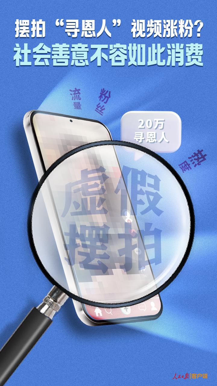 事实上,很多摆拍都有套路,只要认真审核,不难发现其前后矛盾、有违常识之处。平台不妨对既往虚假内容进行研判和分析,构建精细化的验真模型。特别是对于热度上升较快,匹配求助、寻人、慈善等标签的内容,平台还需升级审核力度,降低虚假内容发酵、传播的可能。与此同时,执法部门也应及时出手,对编造谣言、炮制虚假内容等行为依法严厉打击,让逾越底线者付出应有代价,彻底斩断其背后的灰色产业链,守护清朗网络空间。