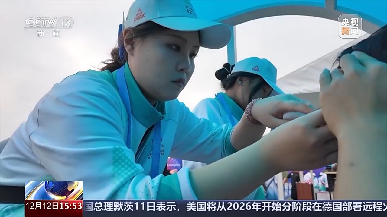 眼贴组志愿者们面对的是技术与时间的双重挑战。一个小组要在10分钟内,为2支队伍完成粘贴。不仅要求手法精准,更需随时感知运动员状态,给予鼓励。