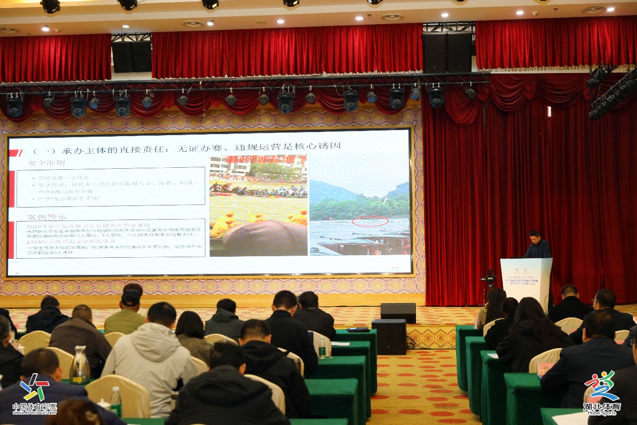 “安全事故的根源,往往始于责任链条的断裂。”省体育局水上运动管理中心负责人在分享中直言不讳。针对近年来民间龙舟赛等水上活动频发的险情,他抛出了“三个决不能”的硬性要求:绝不让责任悬空、绝不能让流程缺位、绝不能让预案失效。他重点阐述了“承办方直接责任、主管部门监管责任、参与者个人责任”三级责任体系,强调任何环节缺失都可能导致安全事故,必须严格执行水域风险评估、人员资质审核、救生装备强制穿戴及现场救援力量足额配置等全流程管控措施,绝不容许“先举办后补手续”。