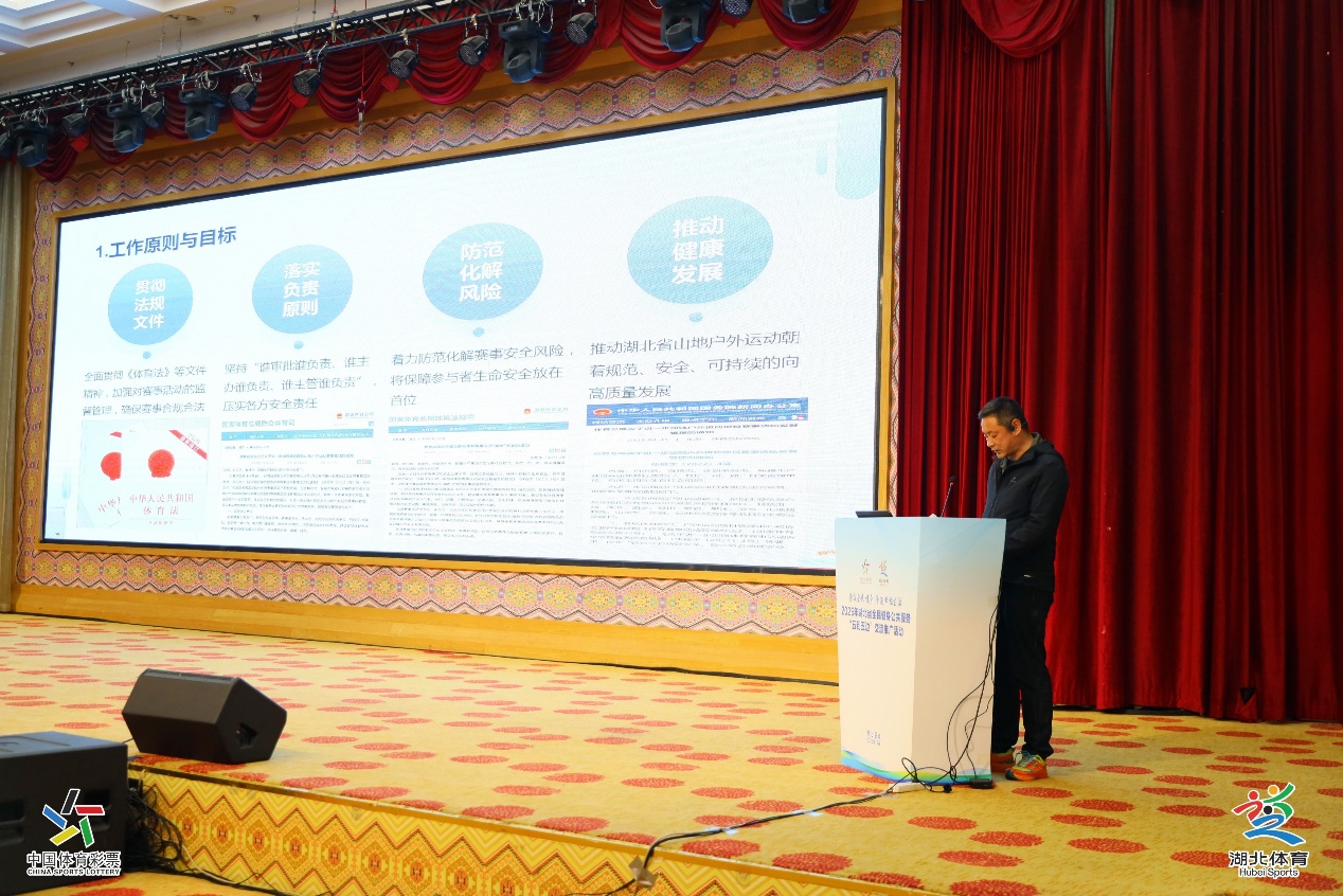 省社会体育管理中心负责人回顾了一年来对山地越野、户外多项等赛事的监管实践,明确了高危险性赛事界定标准。通过介绍“一赛多案一机制”审核、现场勘测、整改督导及网络舆情监控等全覆盖监管举措,指出下一步将重点规范赛事申报流程、强化风险评估、动态实施“黑白名单”管理,推动赛事从“量”的增长向“质”的提升转变。