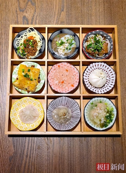 “选择困难症的福音啊!”来自吉林的游客王女士举起手机,对着九宫格连拍数张,“我一直纠结该先吃什么,现在不用愁了。”格子里的每样小吃都分量刚好,一口一个滋味,不必担心浪费,又恰能尝遍武汉精髓。九宫格的设计巧妙化解了游客“眼大肚小”的尴尬,也让武汉这座“碳水天堂”的丰富滋味,得以在一方精致的木盘中浓缩绽放,堪称汉版“漂亮饭”。