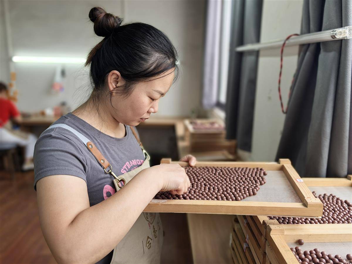 工人仔细检查合香珠的质量。(湖北日报全媒记者 方桐 摄)