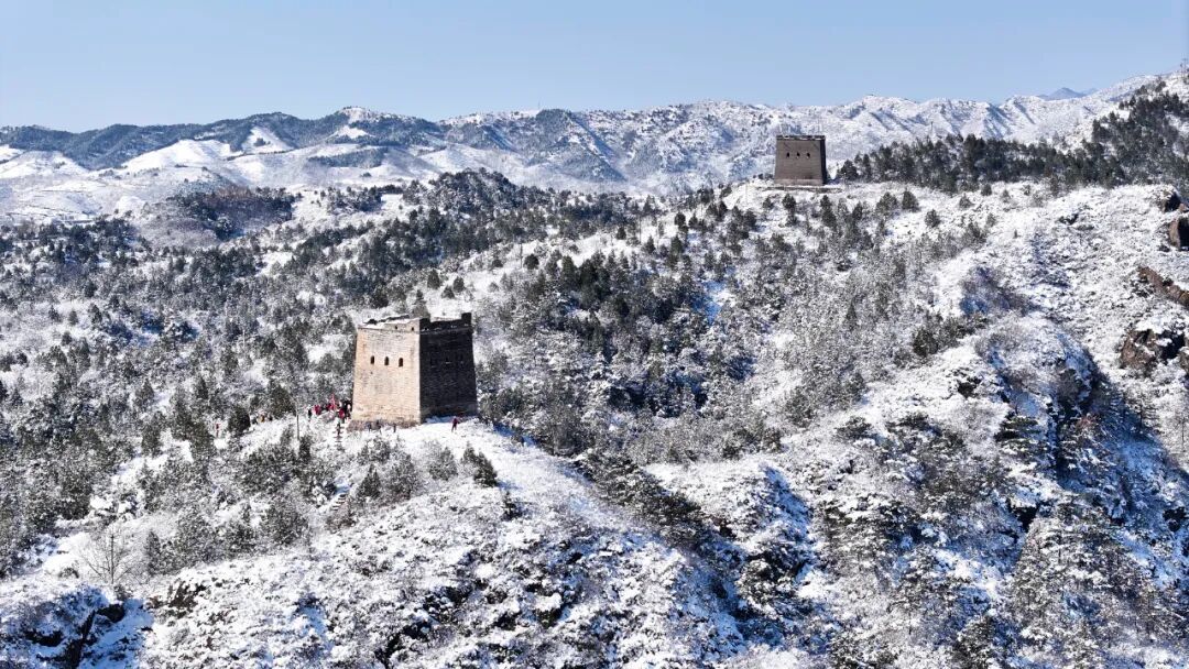 2025年3月16日在北京市密云区拍摄的古北口长城雪景(无人机照片)。新华社发(刘满仓摄)