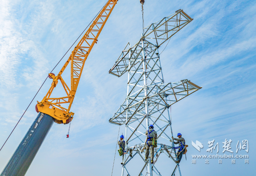 荆楚网(湖北日报网)讯(通讯员张恒 刘思琪)武汉市新洲区举水河两岸,铁塔巍然矗立,施工人员正有序开展架线作业。当前,武汉市新洲区重点民生工程——110千伏新张线新建工程正全速推进,34基新建杆塔已顺利组立,预计1月15日全线完工,为迎峰度冬筑牢电力支撑,助力区域经济社会高质量发展。