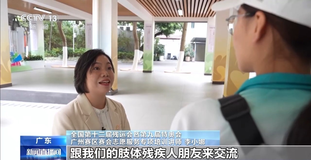 全国第十二届残运会暨第九届特奥会广州赛区赛会志愿服务专项培训讲师 李小娜:长时间交流,我们建议蹲下来跟肢体残疾人朋友来交流。如果我们是站着的话,她是需要抬起头,而且是长时间交流,一直这样子是非常不舒服。
