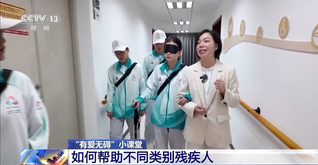 全国第十二届残运会暨第九届特奥会广州赛区赛会志愿服务专项培训讲师 李小娜:“物”指的是物理的环境,在帮助残疾人的时候,我们希望志愿者是一个支持者跟协助者的角色。如果我们看到他们要准备往这个方向进来,我们可以帮他把门打开。发现这个电梯门关的很快,那就可以帮他按一下电梯。不要只当他们的眼睛,不要当他的手,我们的帮助要慢慢地减少,成为一个协助者的角色,协助他适应这个环境,融入这个环境。