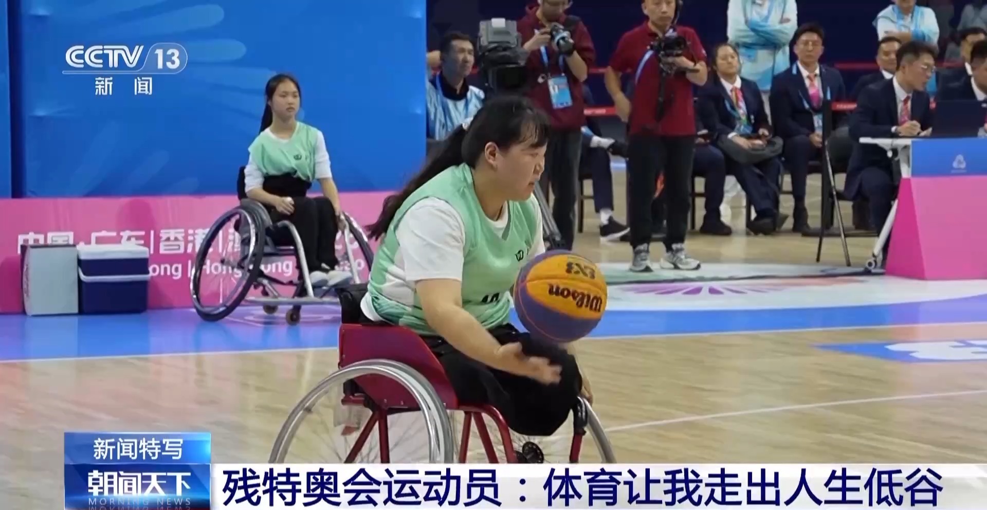 四川轮椅篮球队队员 尚婷:我第一次接触轮椅篮球的时候是靠手驱动轮椅,你自己想要多快,你就用多大的力量。当我推轮椅的时候,我能感受到旁边有风吹过,就跟跑步一样,我内心其实很感动,轮椅就好像我的腿,我可以用这个再次奔跑。