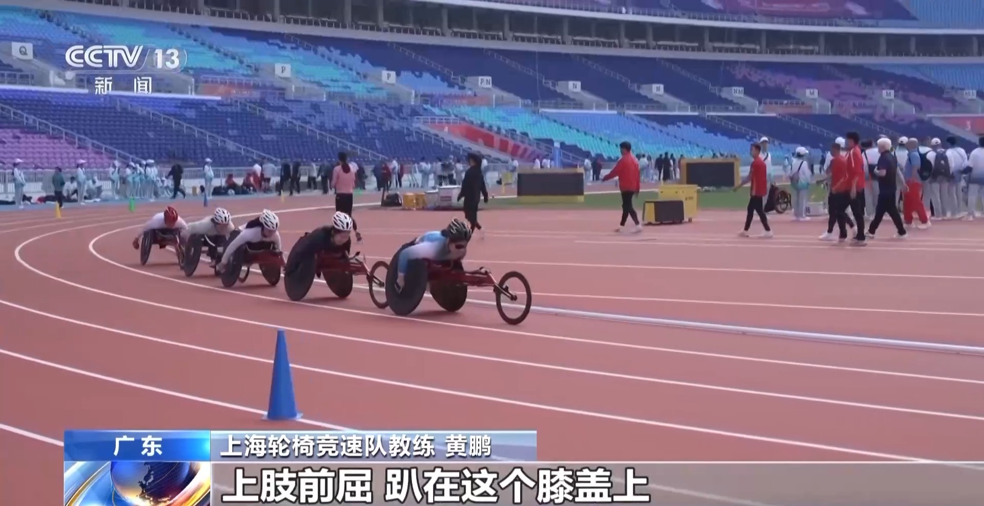 上海轮椅竞速队教练 黄鹏:多数运动员是跪在竞速轮椅里面的。上肢前屈,趴在膝盖上。比如说我们一堂训练课,要三个小时或者两个小时,他要一直坐在车上。肌腱会压的酸,这个是长期他们都要克服的。