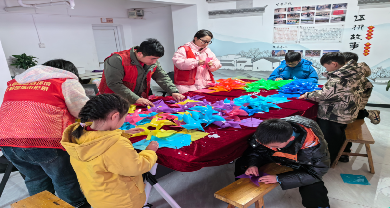 活动现场暖意融融,社工与志愿者化身“童心守护者”,带领孩子们开启趣味十足的改造之旅。在风车制作环节,孩子们发挥想象力,搭配缤纷色彩、裁剪独特造型,志愿者则耐心协助,随着一个个创意风车新鲜出炉,大家迫不及待地前往拾光园,开启安装环节。社工提前规划布置点位,志愿者与孩子们分工协作,小朋友们积极献策,将风车挂在树上,社区志愿者则细心固定,确保风车稳固美观。微风拂过,五彩风车迎风转动,成为拾光园一道靓丽的风景线。