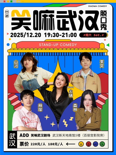 其他类型演出同样丰富。俄罗斯型男舞团“TODES”的水舞剧《雨中》将于2025年12月30日19:30,以及12月31日19:00和22:30在湖北剧院上演。笑嘛喜剧脱口秀专场则安排在12月20日19:30及12月21日16:00于武汉新天地壹方南馆举行。