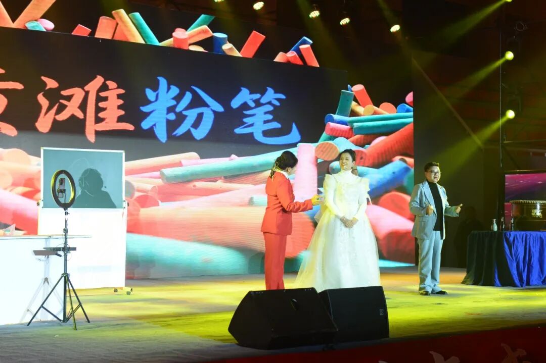 随着《花开新时代》音乐渐渐响起,展演在孩子们灵动呆萌的舞蹈中拉开帷幕。随后,武汉传媒学院学子带来的情景剧《真货才真香》,聚焦当下热门的直播带货,用真诚推荐杨河千张等农产品,得到了现场观众连连称赞;由应城市融媒体中心组织创作的情景剧《汉北河上“带货渡”》则将家喻户晓的“白娘子”故事与应城汉北河相结合,剧中演员化身汉北河畔的“好物推荐官” 为南垸藕粉代言;还有汤池镇带来的朗诵节目《热土上的荣光与芬芳》更以诗意的语言,将应城人冬天里最必不可少的汤池温泉、应城甲鱼的魅力一一诉说,实现文旅与好物的协同推广。