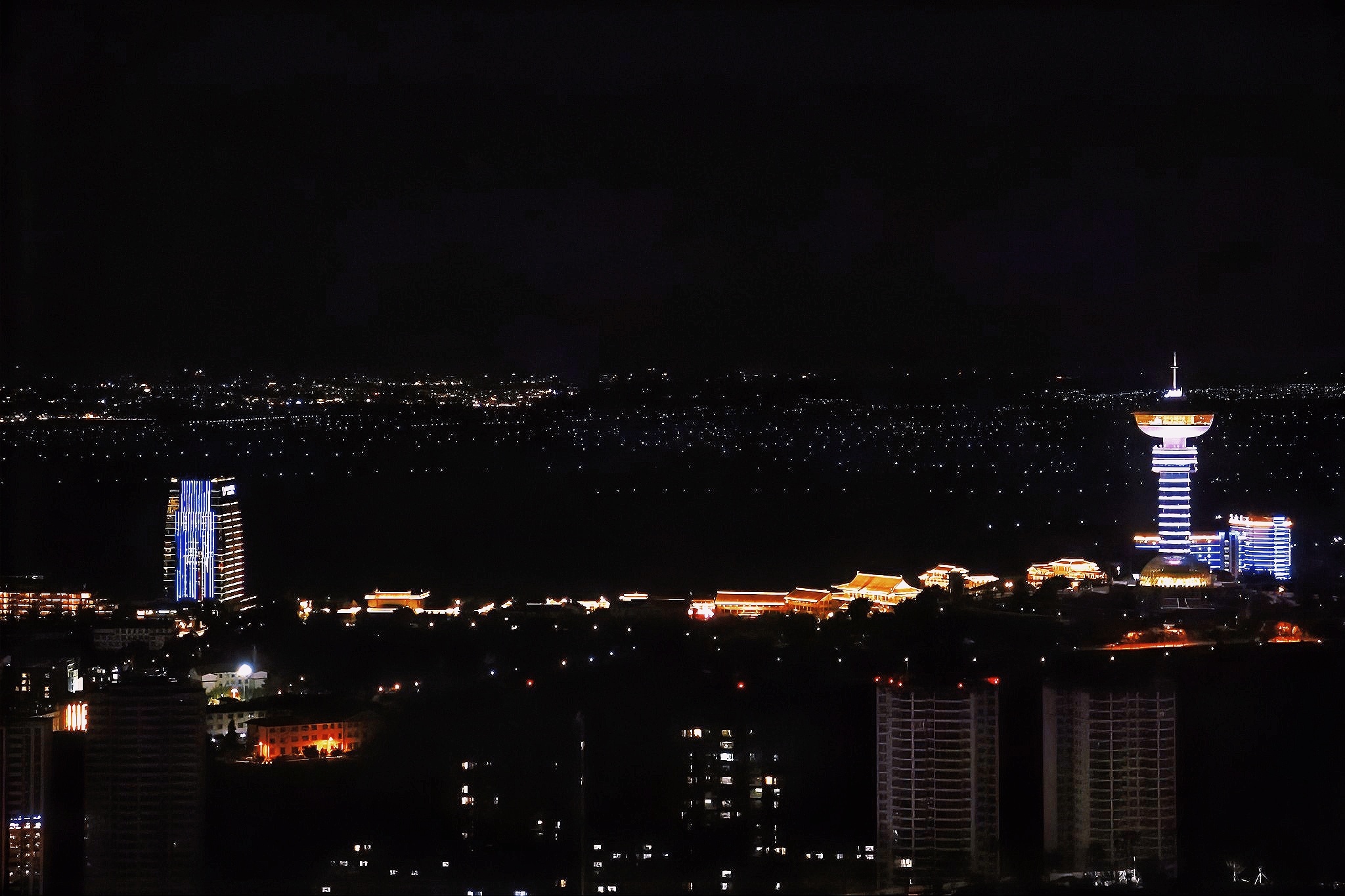 听风楼与星星点点的渔灯相辉映。 武文雯摄。