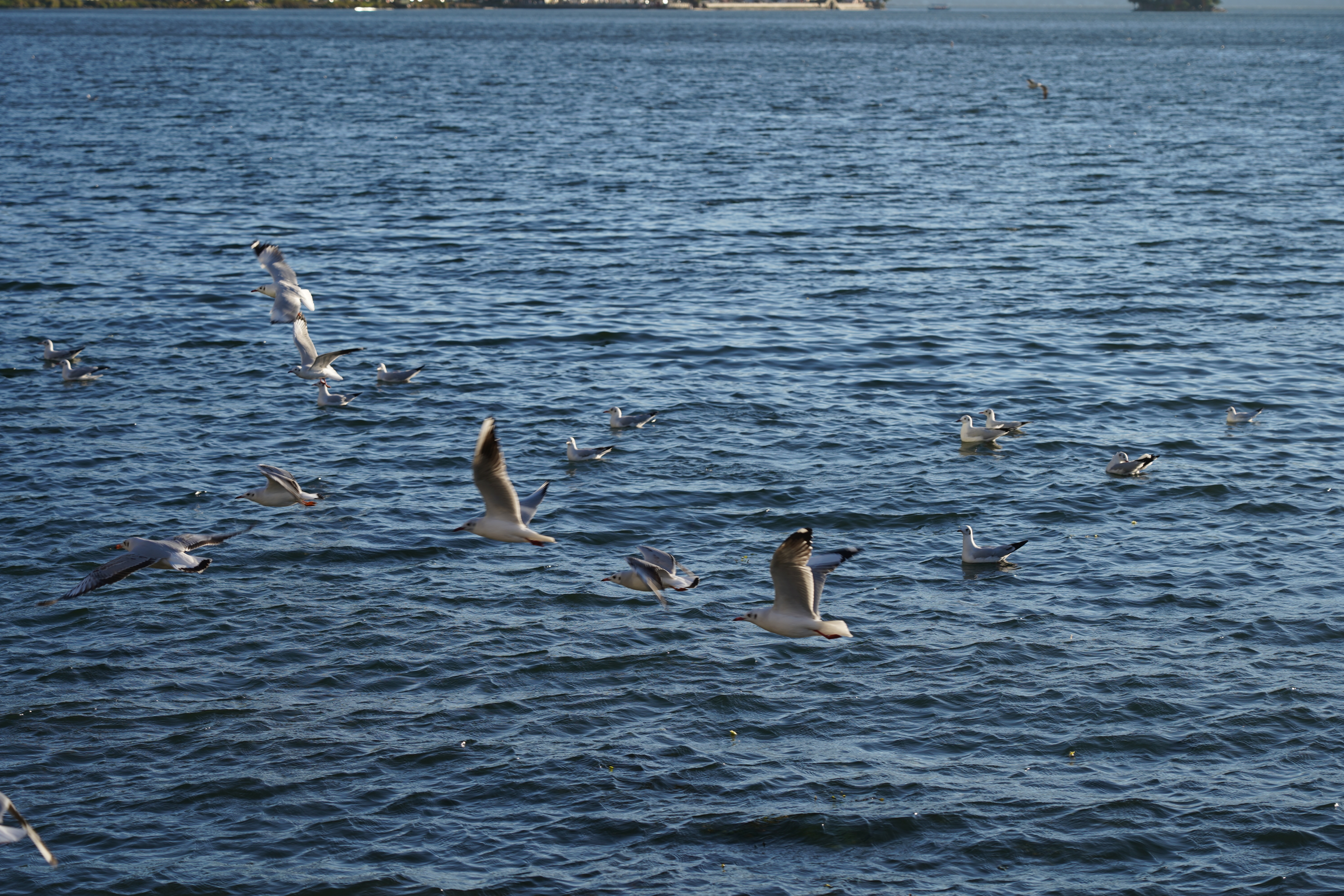 首批过冬红嘴鸥已到达挖色镇海印村湖岸边。武文雯摄。