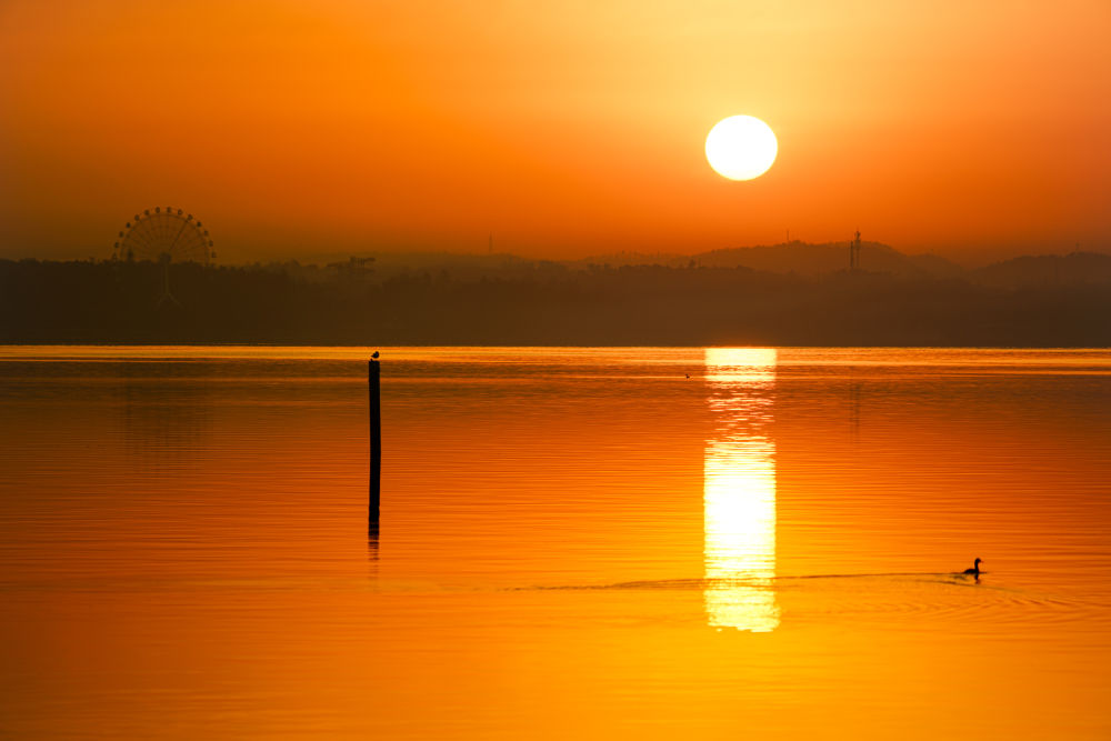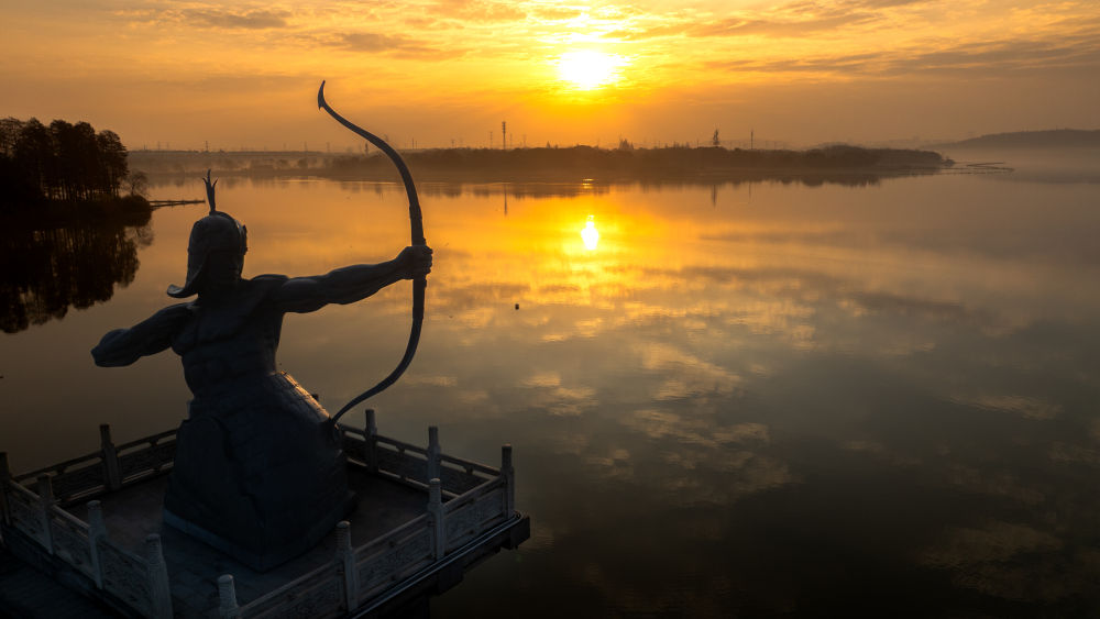 12月14日在武汉市东湖风景区拍摄的日出。新华社记者 沈虹冰 摄