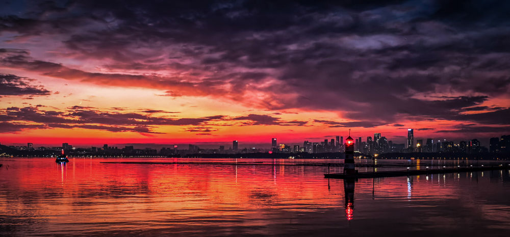 11月16日在武汉市东湖风景区拍摄的朝霞。新华社记者 沈虹冰 摄