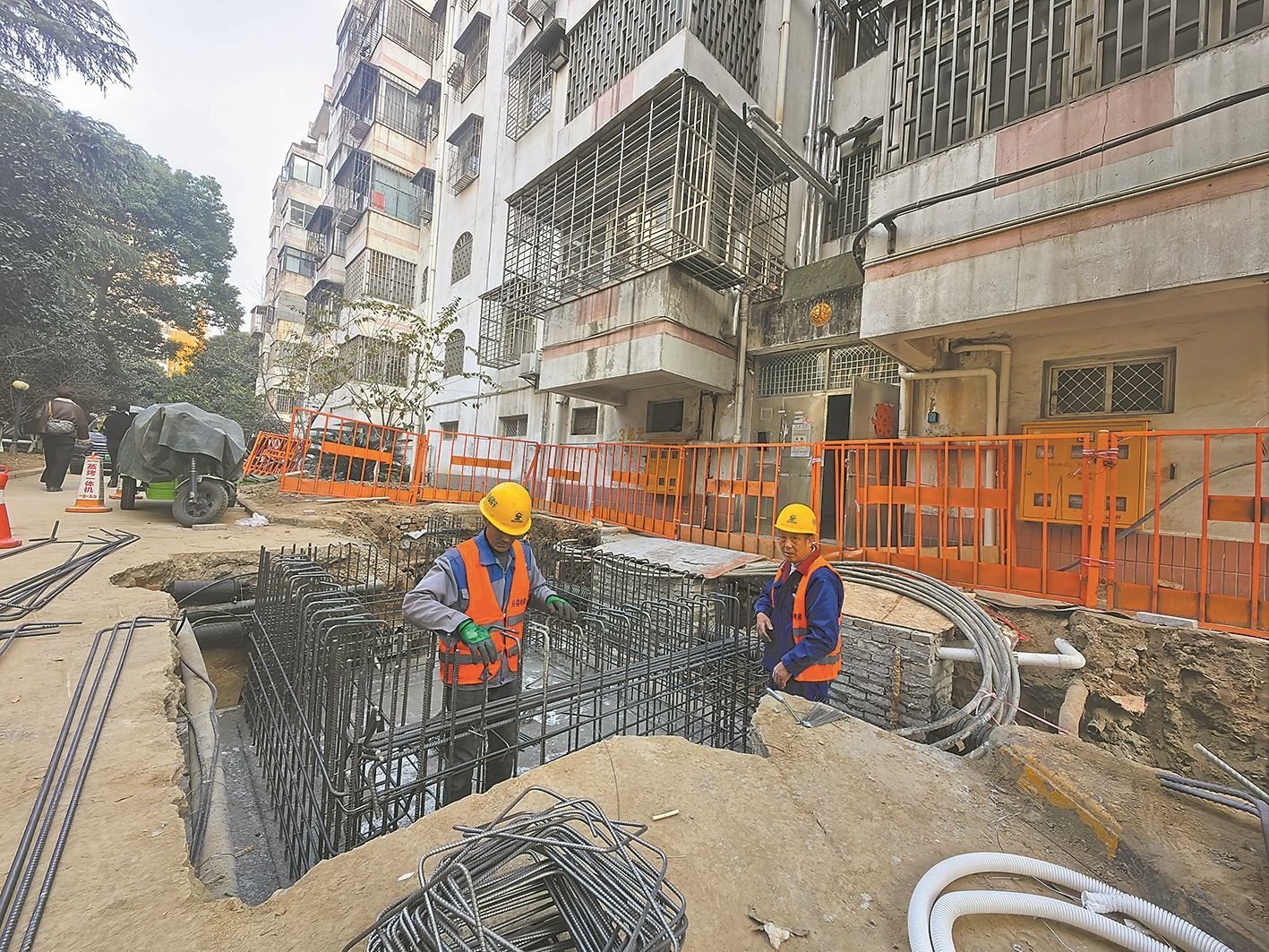 ▲华电寓苑小区电梯井建设中。