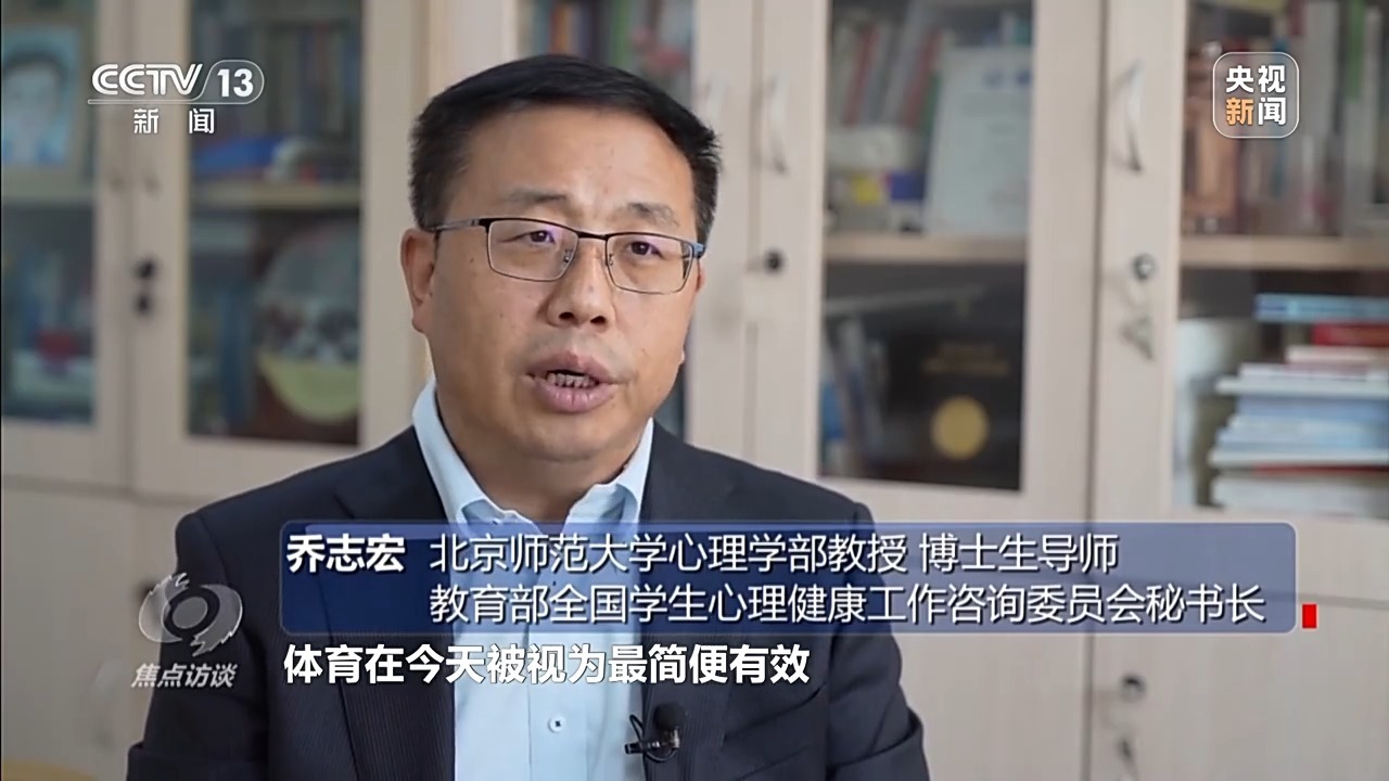 北京师范大学心理学部教授、博士生导师 教育部全国学生心理健康工作咨询委员会秘书长 乔志宏:体育在今天被视为最简便有效改善学生心理健康的路径,健康的体魄是心理健康的基础,运动完之后会感到很畅快;如果有体育锻炼循序渐进,让他从过去的不会、不愿意到愿意,然后到做得好,能够提高克服困难的勇气、毅力,会让你有自信心。