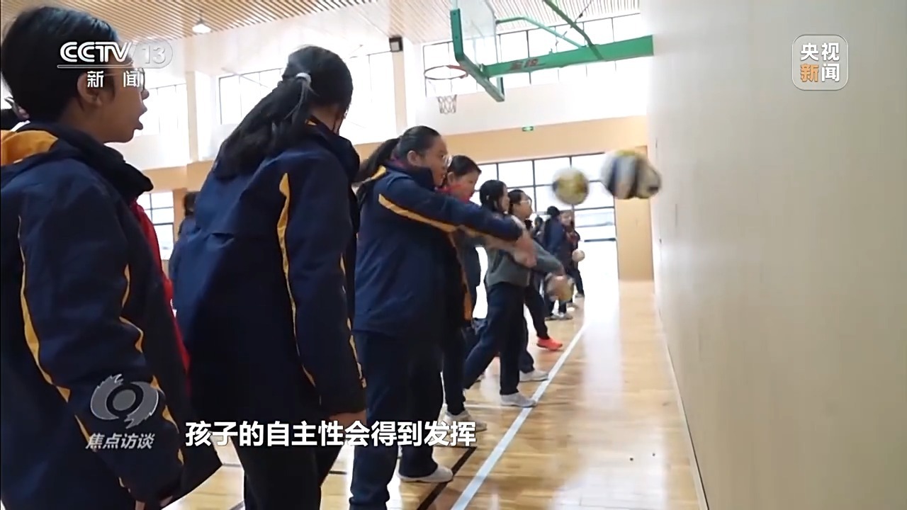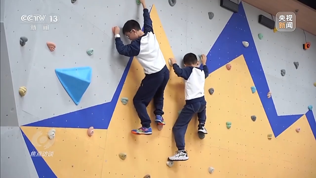 在重庆人民小学,“每天锻炼两小时”已经成为常态。不仅如此,学校还建设了攀岩墙、跑酷和体适能训练区,开发特色体育课程,让孩子们在运动中释放压力、增强自信。在四年级一班的攀岩课上,孩子们专注地寻找下一个攀岩点。对他们来说,这不仅是体能的挑战,更是心理的锻炼。