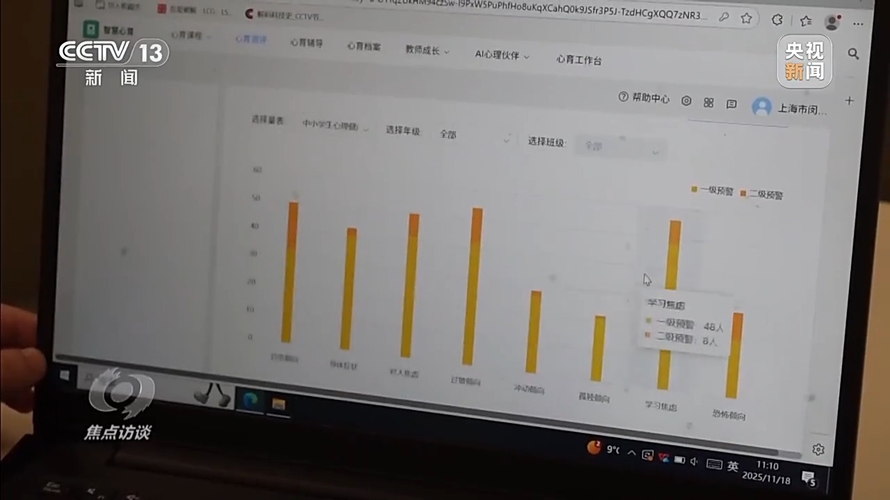 今年以来,作为闵行区AI技术使用的试点学校,学校利用AI设备来开展学生心理健康工作。这也是落实《育心十条》提出的利用人工智能等现代信息技术赋能学生心理健康工作的一次尝试。