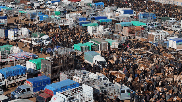 新疆创锦黄公农产品交易市场的马匹交易区(无人机照片)。
