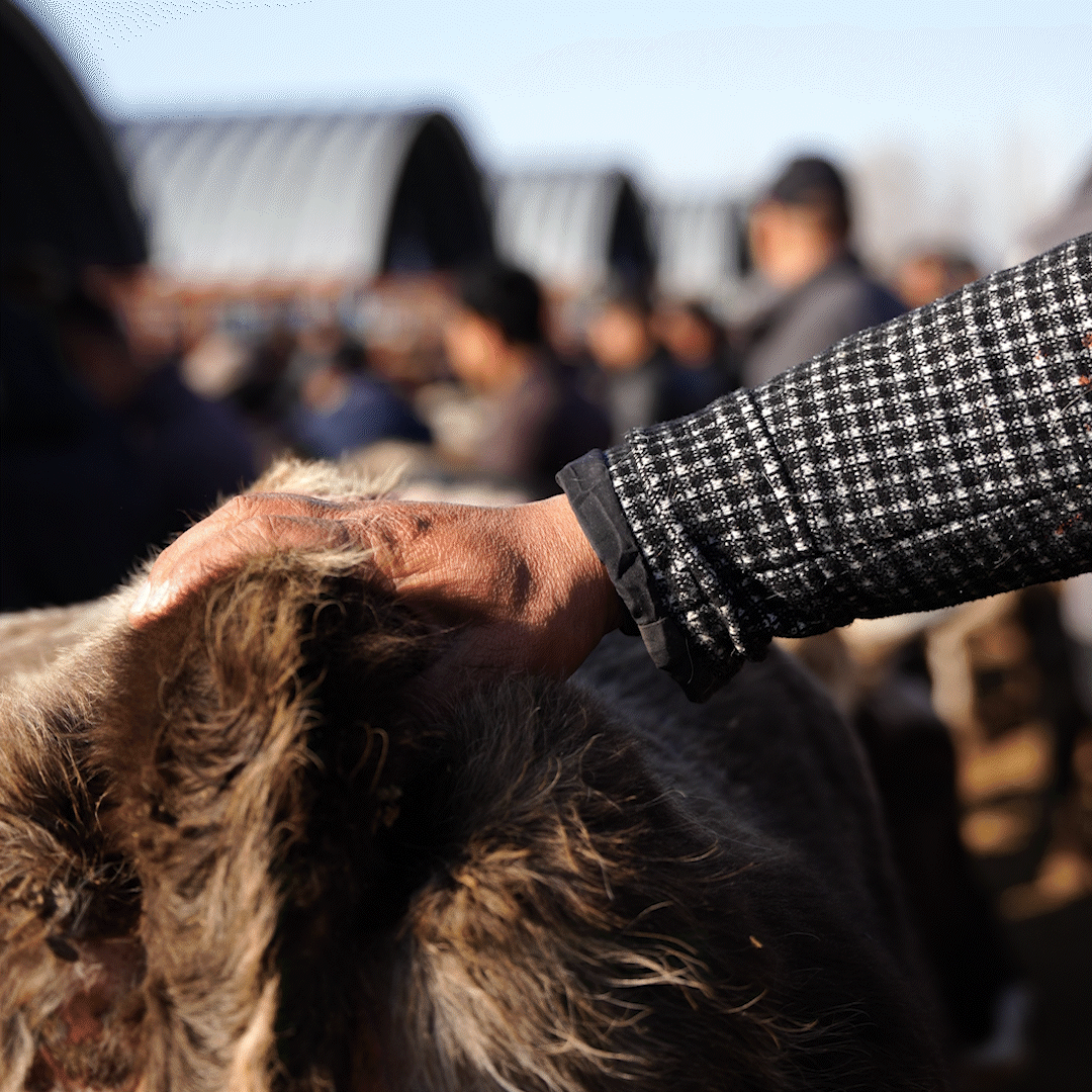 马军在新疆创锦黄公农产品交易市场为客户挑选牛。