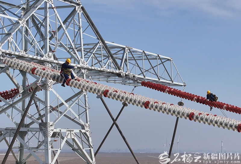 4月30日,新疆送变电有限公司员工对哈密一重庆±800千伏特高压直流输电工程线路进行验收。张利民摄
