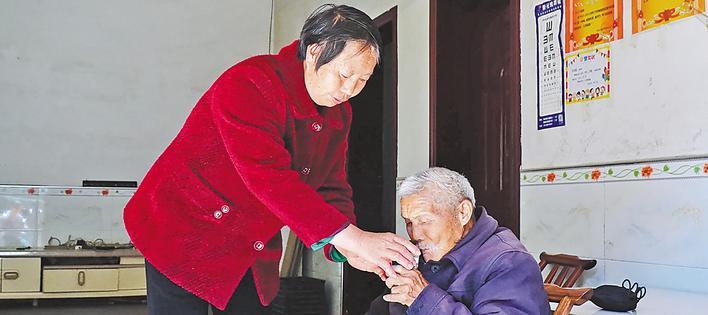 40年来,黄朝梅没有半句怨言,每天不仅给叔父陈智新做合口的饭菜,端到老人手里,还伺候他洗脸洗脚,将老人收拾得干干净净。
