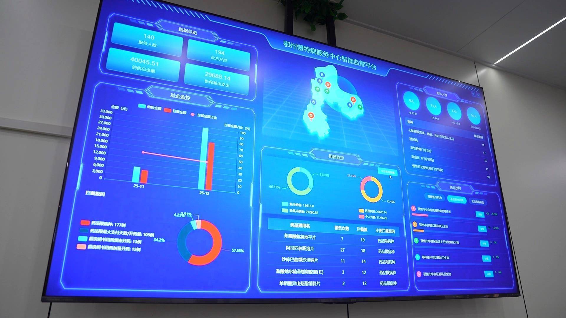 鄂州市慢特病服务中心智能监管平台将全市患者的用药动态、基金流向、服务人次、预警信息等尽收眼底,它是整个体系的“智慧大脑”。(图:通讯员周璟、李刘斈子)