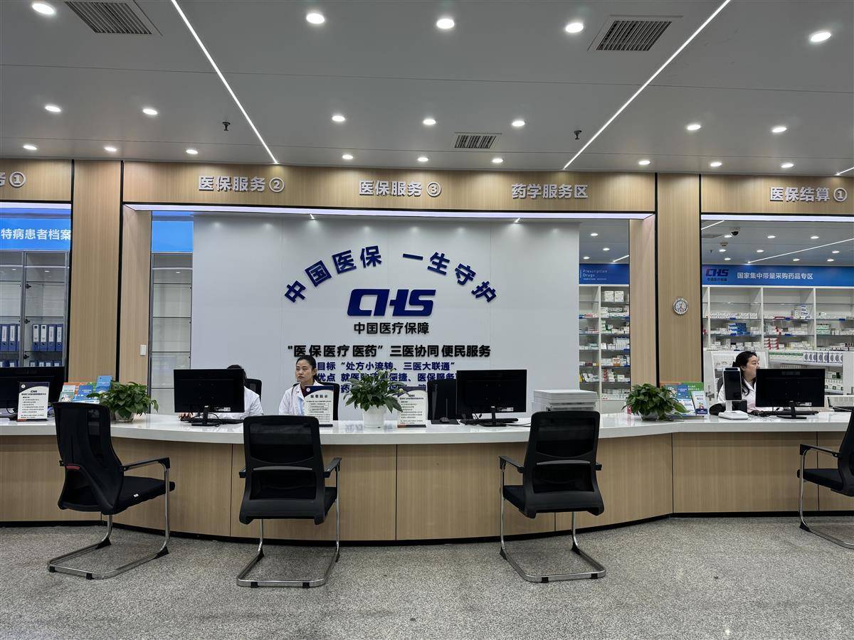 医保服务窗口直接入驻,患者备案、咨询、报销“一窗办理”。(图:通讯员周璟、李刘斈子)