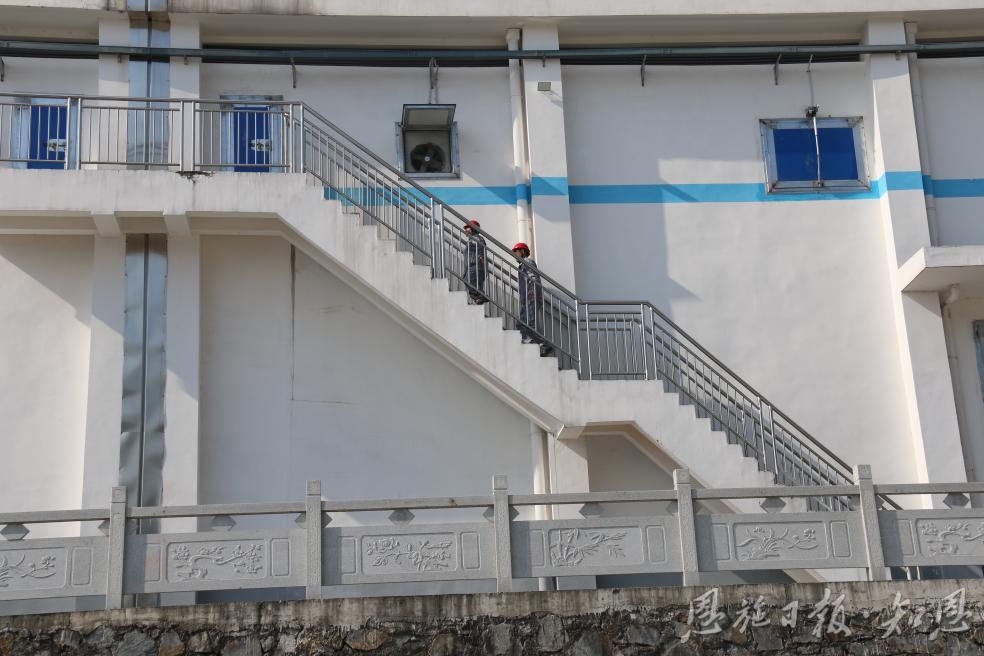 公司员工爬上粮仓阶梯。(全媒体记者曾维明 摄)