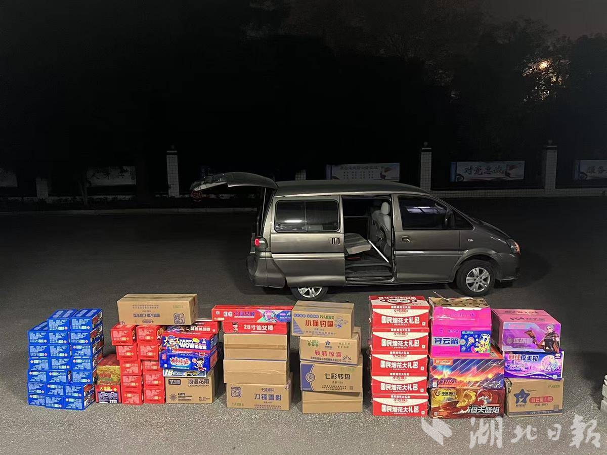 武汉市警方查获非法运输烟花爆竹的车辆。