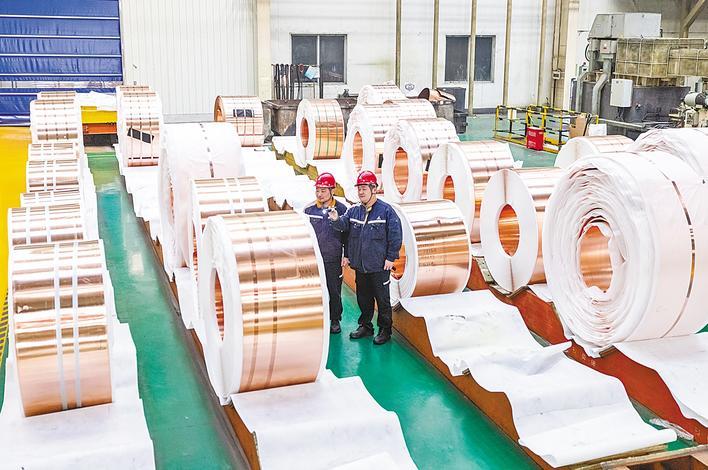 12月16日,位于黄石市下陆区的中铜华中铜业有限公司,员工正在检验铜板带,加快赶制订单,奋力冲刺“全年红”。今年以来,该公司投入近9000万元实施绿色工厂改造,推进产品结构向高端跃升,实现产能、利润双提升。