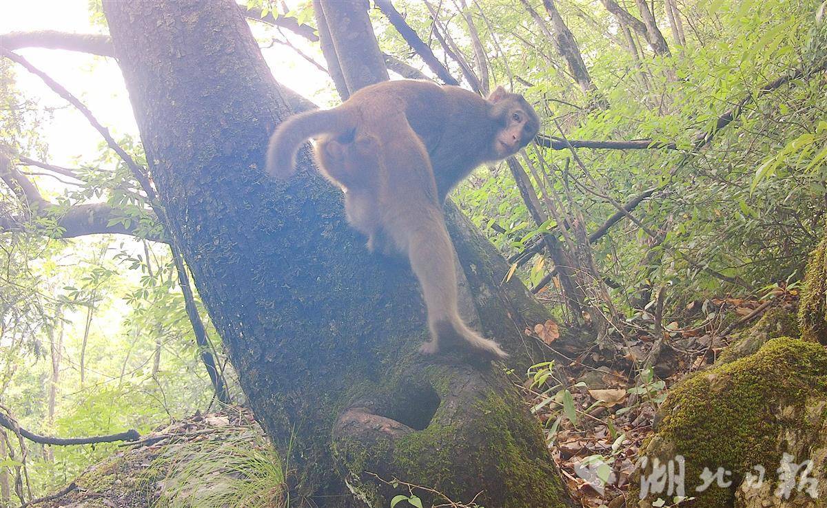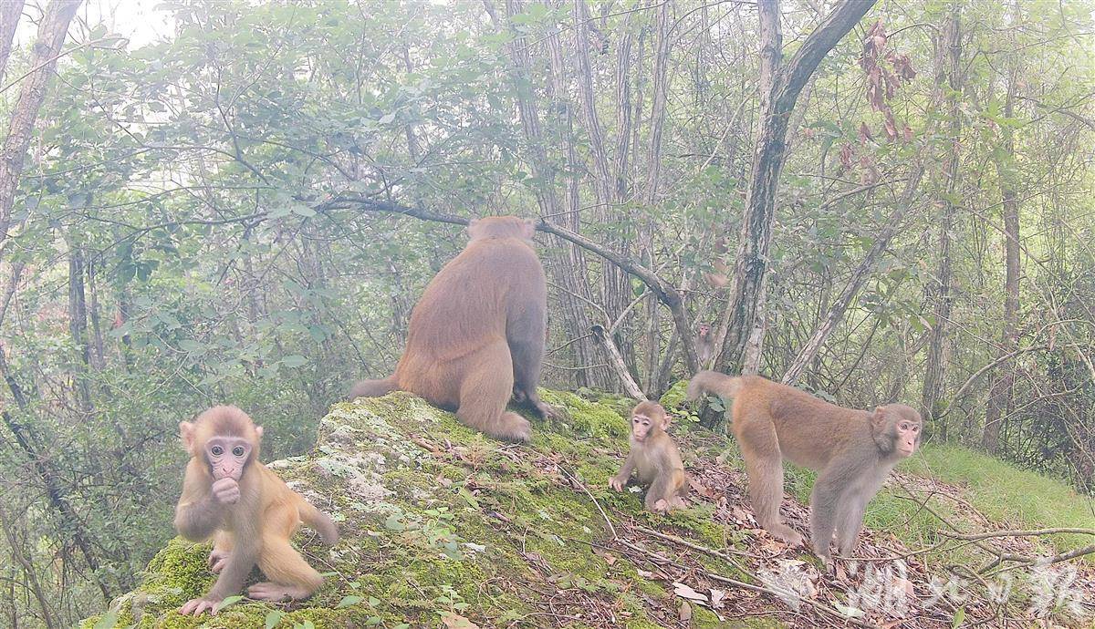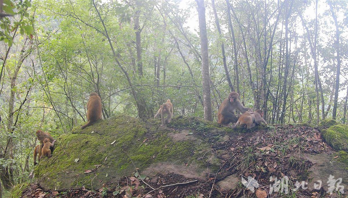 图为湖北堵河源国家级自然保护区拍摄到的野生猕猴画面。(受访单位供图)