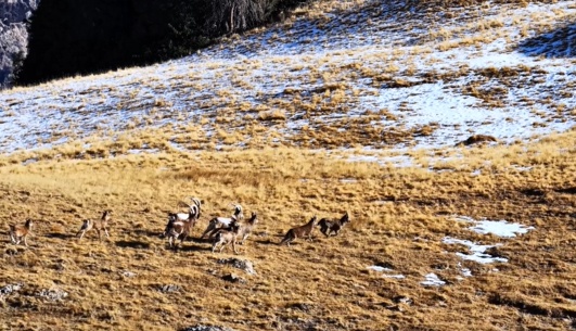 12月14日,在库车市牙哈镇卡拉库尔管护站附近峭壁上,几十只北山羊在岩壁间从容穿梭,动作矫捷自如。北山羊作为国家二级保护野生动物,是栖居海拔最高的哺乳动物之一,它们的活跃出现,意味着当地高山生态系统健康状况良好。