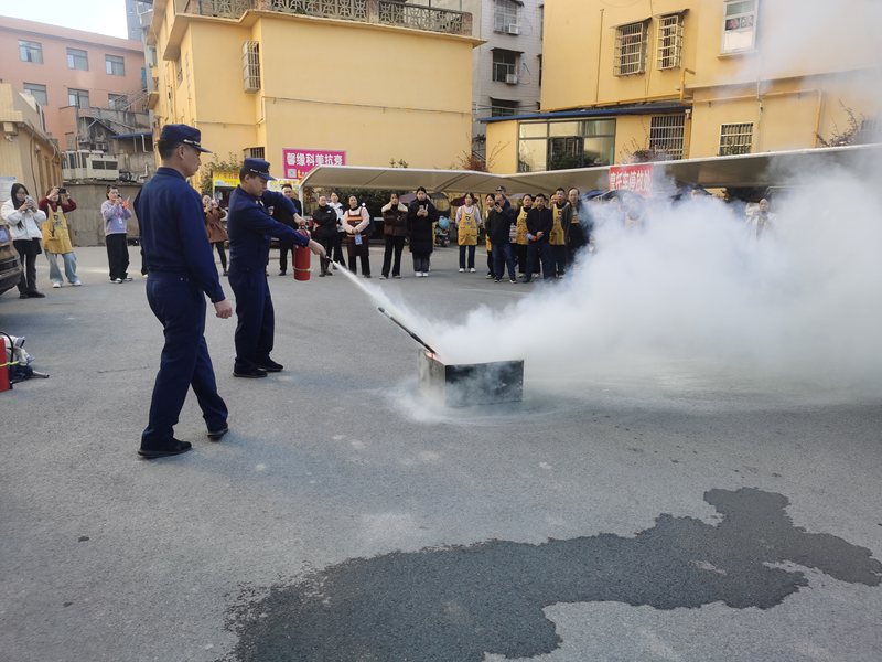 期间,“火焰蓝”宣教队带领物业服务企业员工对小区内的消防设施器材进行逐一现场教学,讲解示范了灭火器、室内消火栓、防毒面罩等消防设施器材的使用要领,“手把手”指导物业员工进行操作,及时纠正物业员工的错误动作,同时组织全体参训人员进行了应急疏散逃生演练,切实提升了物业从业人员的消防安全意识以及火灾隐患排查整改、处置初期火灾的能力。