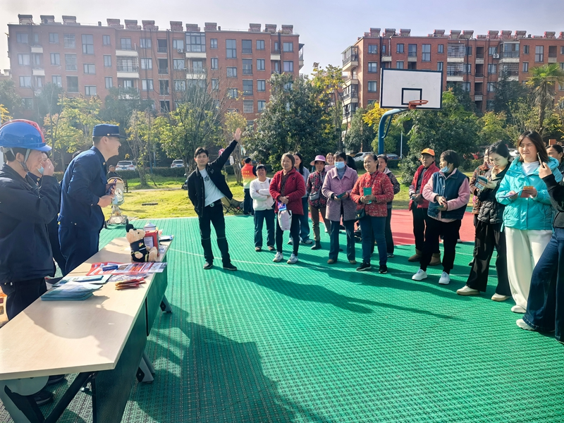 在集中宣传现场,“火焰蓝”宣教队与电力工作人员分工协作,向过往居民发放宣传手册,详细讲解在家防火注意事项、电气线路老化危害、初期火灾扑救技巧等关键知识。现场还设置“你问我答”互动环节,围绕消防法规、日常防火知识等内容出题,群众踊跃参与抢答,工作人员逐一耐心解答,对回答正确的居民现场赠送定制消防文创礼品,吸引了众多居民积极参与,营造了“学消防、懂安全、会避险”的浓厚氛围。此次广场宣传共发放宣传资料300余份,赠送文创礼品60余件。