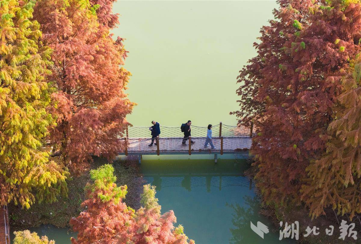 12月16日,黄石磁湖湿地公园色彩斑斓、风景如画,吸引众多市民和游客前来休闲、游玩,乐享冬日美好时光。近年来,黄石市下陆区持续推进城市生态园林建设,着力构建“水绿交融、城景共生”的生态格局,通过城市综合整治、河道疏浚、连通水系和种植植被等方式,将昔日杂草丛生的污泥滩改造成为湿地公园,既美化了城市环境,又满足当地市民休闲、运动、健身需求。(湖北日报全媒记者 薛婷 通讯员 王江 周巍 摄)