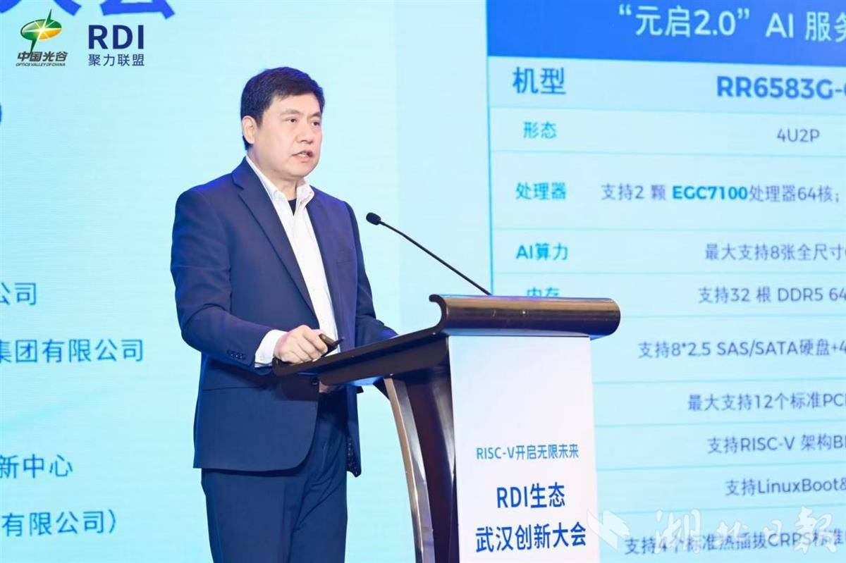 王东升呼吁产业界共同推进RISC-V三大方向:一是打破路径依赖,构建自主技术体系;二是聚力协同攻关,共筑高性能计算底座;三是深化融合应用,树立“RISC-V+AI”武汉标杆。