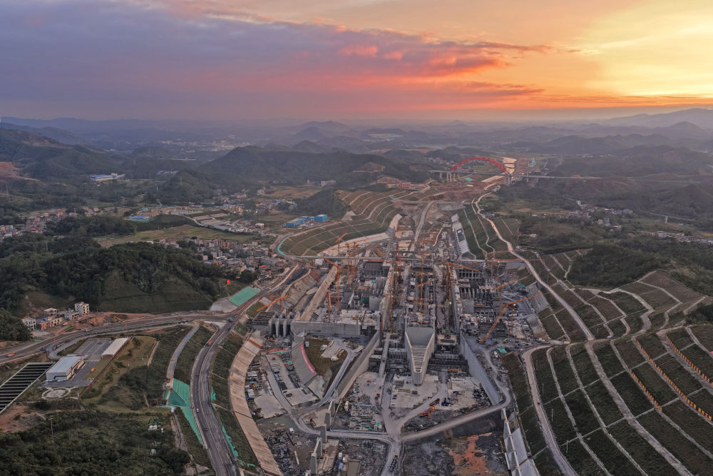 这是11月11日拍摄的广西平陆运河马道枢纽施工现场(无人机照片)。新华社记者 周华 摄
