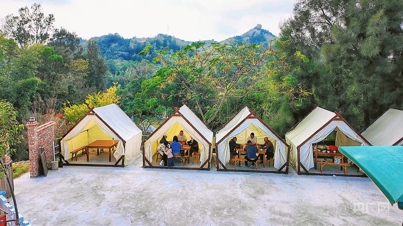游客在丑石诗歌村落休憩(央广网发 张语欣 摄)