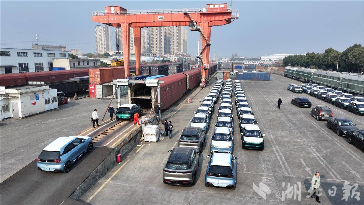 12月18日,在湖北汉江铁路运输有限公司刘岗货场,东风纳米01正有序装入货车,将通过铁路运达白俄罗斯。此笔订单总计1500辆,是工厂截至目前接到的单个海外市场单笔数量最大的订单。自今年6月接到白俄罗斯市场首个订单,截至目前,东风奕派科技襄阳工厂共赶制白俄罗斯订单4个,累计达到4000辆。(视界网 王虎 李旭晖 摄)