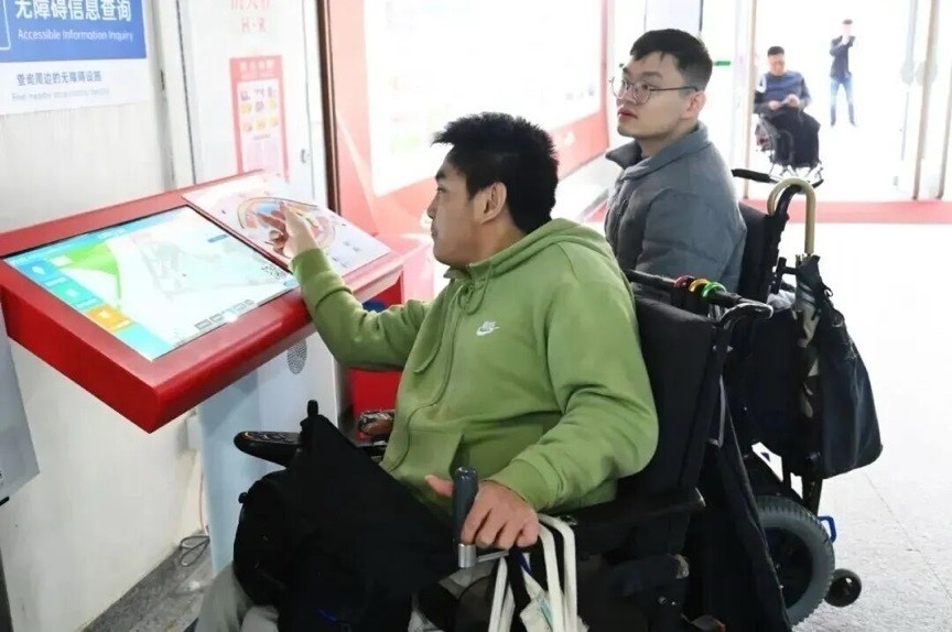 在广州体育馆中央大厅,立体导航地图配备盲文标识,可随时查看场馆无障碍设施位置以及比赛赛程。场馆内设有无障碍智能服务桩,暖心设置“一键求助”功能,观众可即时呼叫工作人员,同时配有语音播报和盲文标识,适合有视听障碍的人士使用。1号馆内设立的无障碍服务中心,则提供手语服务、语音文字转换及3D手语翻译等多元支持,观众可直接按铃寻求帮助,场馆还设有无障碍观赛席位,确保行动不便的观众舒适、安全观赛。“场馆特别好!”北京队运动员赵瑞点赞道,“场地很好、很明亮,现场志愿者也特别照顾我们。”