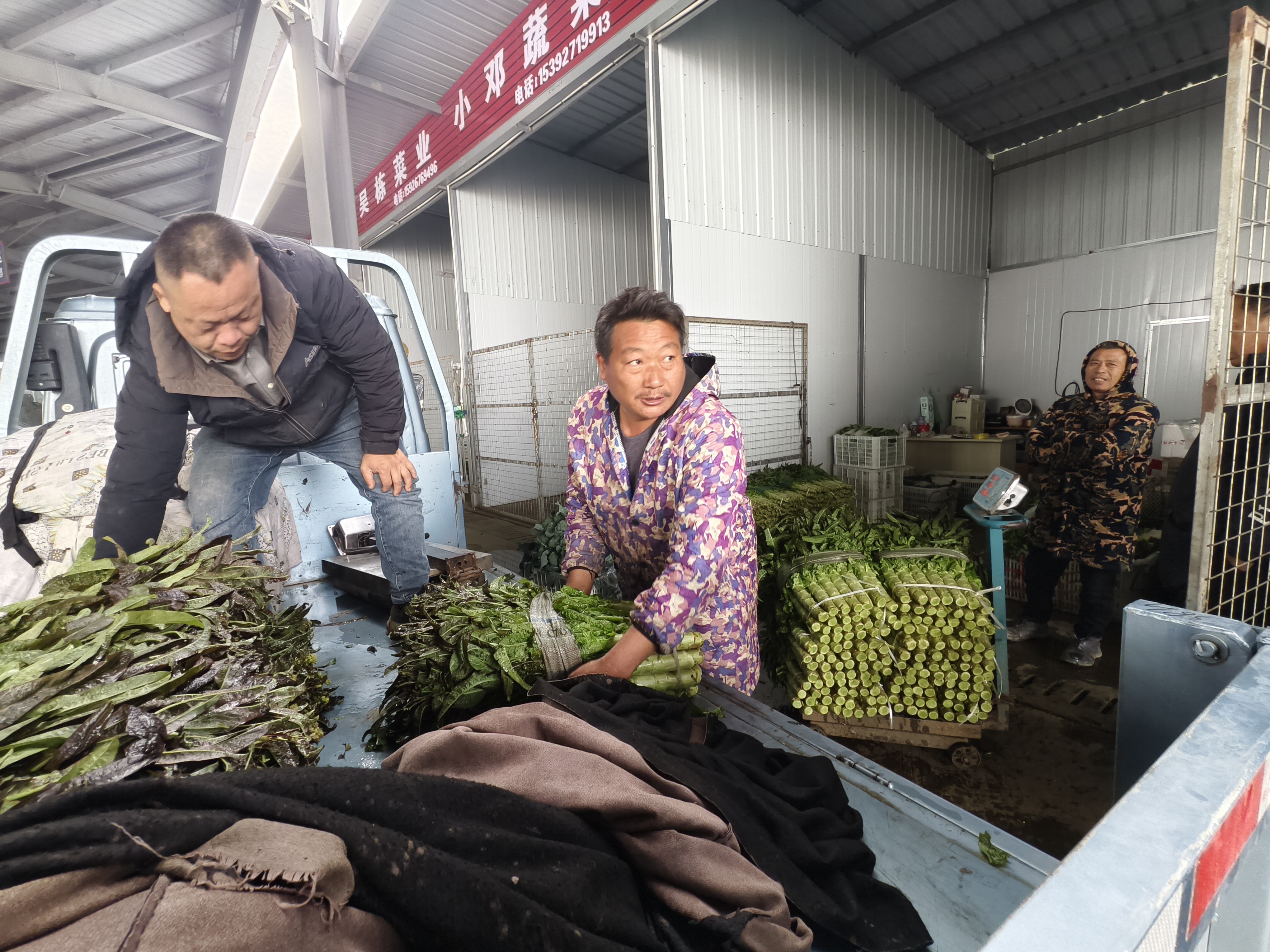 王亚兵(中)将新鲜的莴苣运到九江琵琶湖市场。(湖北日报全媒记者 刘毅 摄)