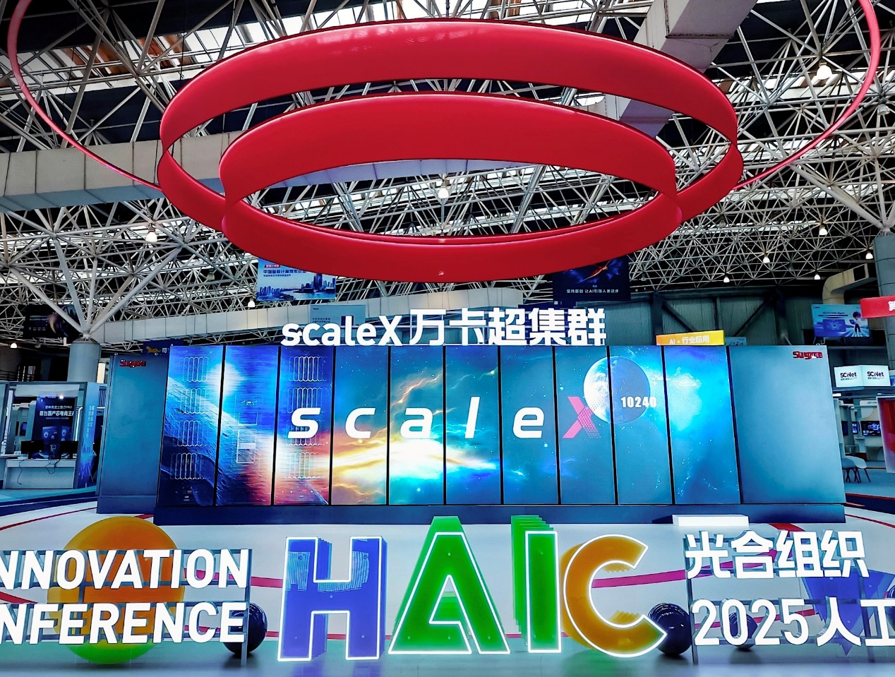 荆楚网讯(记者 谢宇航)2025年12月18日,光合组织2025人工智能创新大会(HAIC2025)在昆山举行。会上,中科曙光正式发布并展出了国产万卡级AI集群系统——scaleX万卡超集群,这是该类系统首次以真机形式公开亮相,为国产人工智能产业发展提供了重要的算力支持。