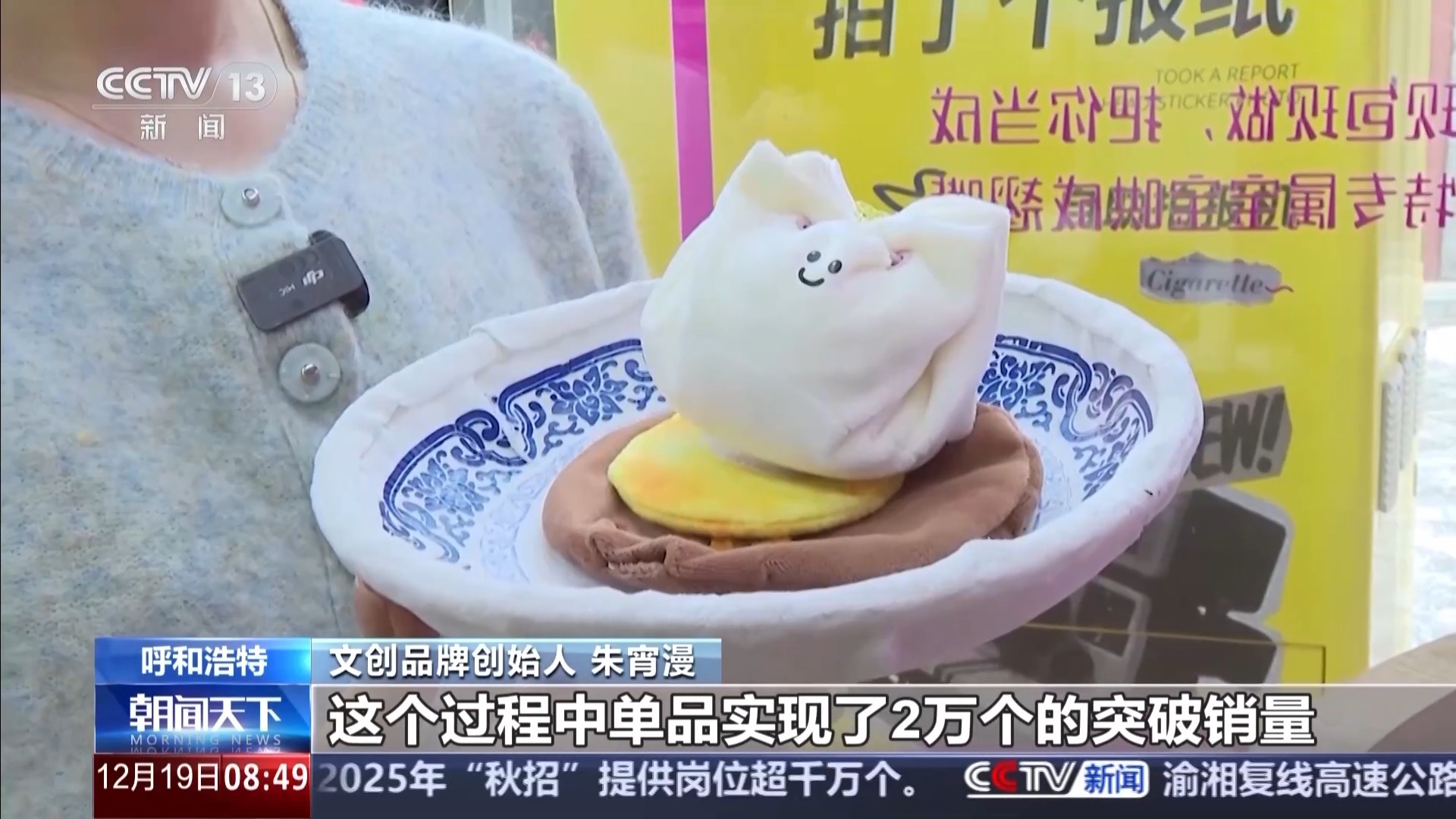 文创品牌创始人 朱宵漫:从2024年10月份我们的小烧麦正式上市,这个过程中单品销量突破2万个。我们希望让大家在呼和浩特能够吃到特色美食的同时,还能带走一份这个城市的专属记忆。