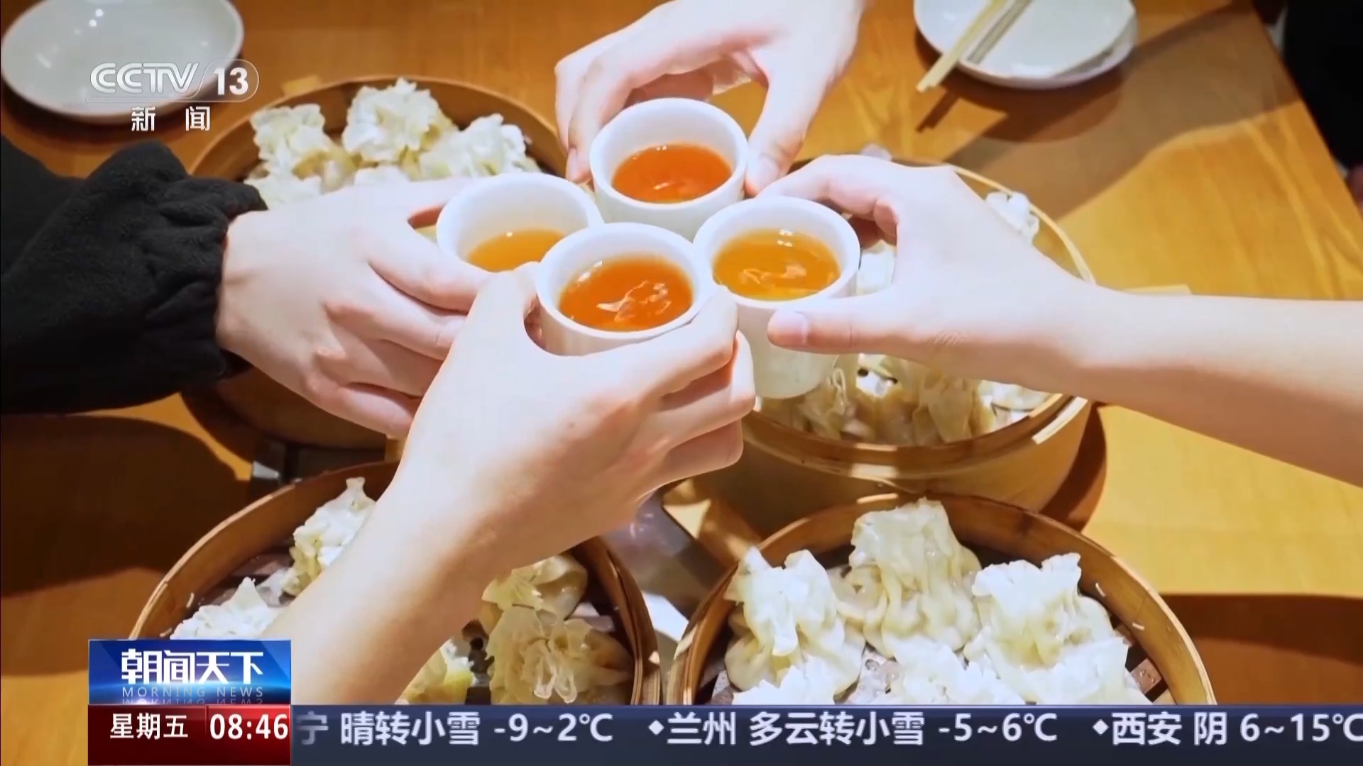 总台记者 赵思雯:烧麦有蒸和煎两种做法。吃烧麦就要配上醋和辣椒油,这个面皮看着很薄,但咬起来却是筋道的,内馅保留着羊肉和大葱的香味。再试试煎烧麦,底部这层酥脆的壳咬起来是“咯吱咯吱的”,因为混合了油香,整体的口味更加浓郁。而这一碗用羊骨与新鲜杂碎熬煮而成的羊杂汤,则是烧麦的绝佳搭配。撒上翠绿的香菜,淋一勺鲜亮的辣椒油,喝上一口,鲜、香、辣、暖层层递进,瞬间驱散一身寒气。