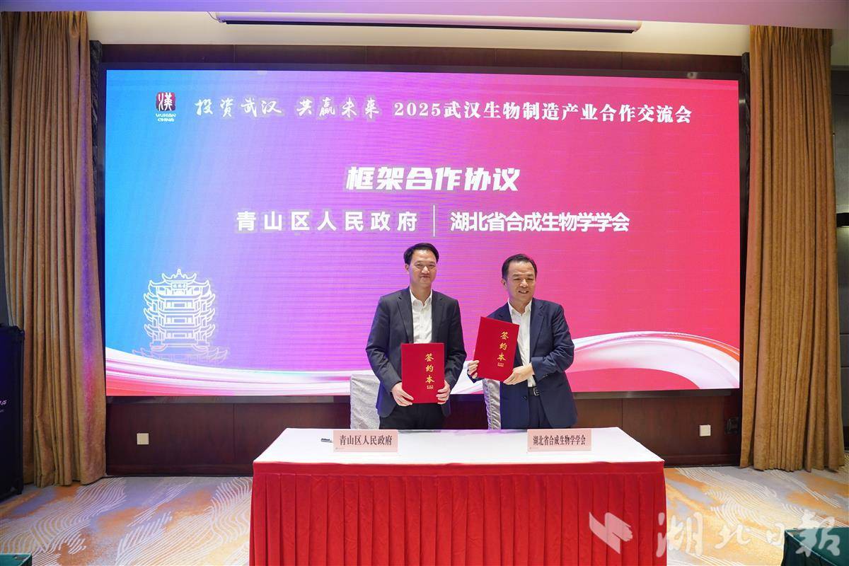 此次交流会搭建起产学研用对接平台,为武汉生物制造产业发展凝聚起合力。会议最后,青山区人民政府与湖北省合成生物学学会签订战略合作协议。青山区拥有武汉唯一合规化工园区,钢铁、石化等产业基础良好,湖北省合成生物学学会具备强大的科研实力和科研成果转化能力,双方将紧密围绕生物制造产业进行合作。