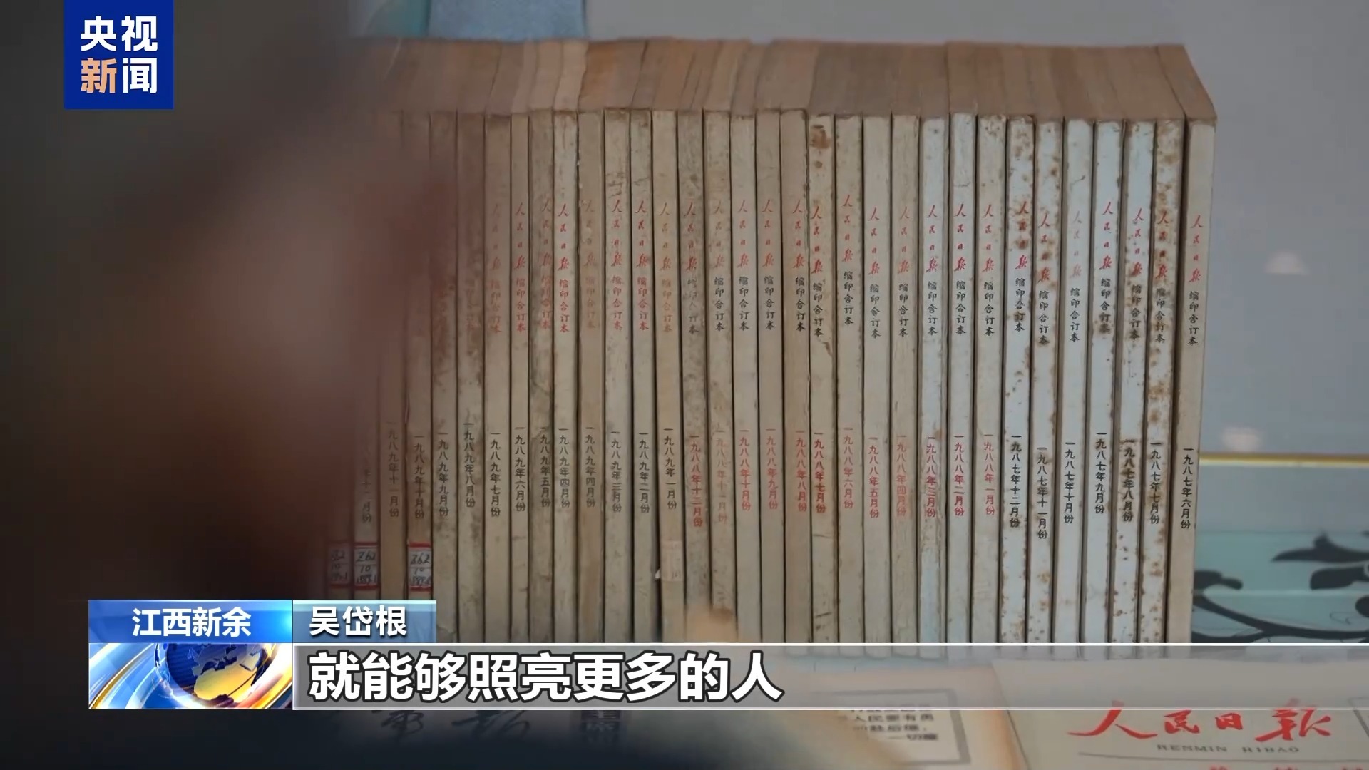 2019年,吴岱根从渝水区水利局退休,有了更充裕的时间收藏各类报纸资料。2021年,下村镇党委决定创建党员教育基地。得知这个消息,吴岱根和家人商量,将自家的部分房屋改建为展馆,并担任起了义务讲解员。这几年,吴岱根的身体不太好,但只要条件允许,他总会亲自为参观群众讲解,让大家了解每一份收藏背后的历史。