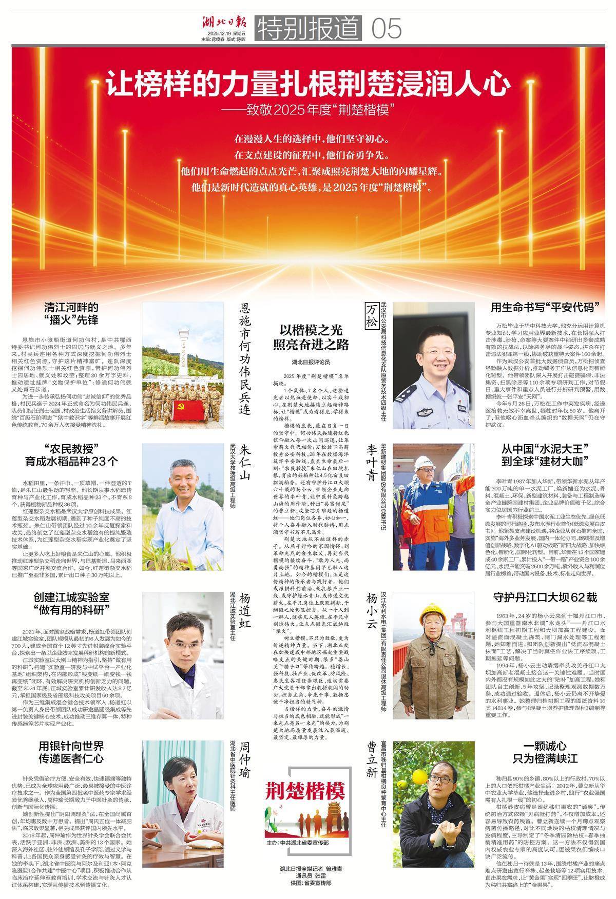 致敬荆楚楷模,汇聚支点力量。12月18日,2025年度“荆楚楷模”名单发布,1个集体、7名个人上榜。