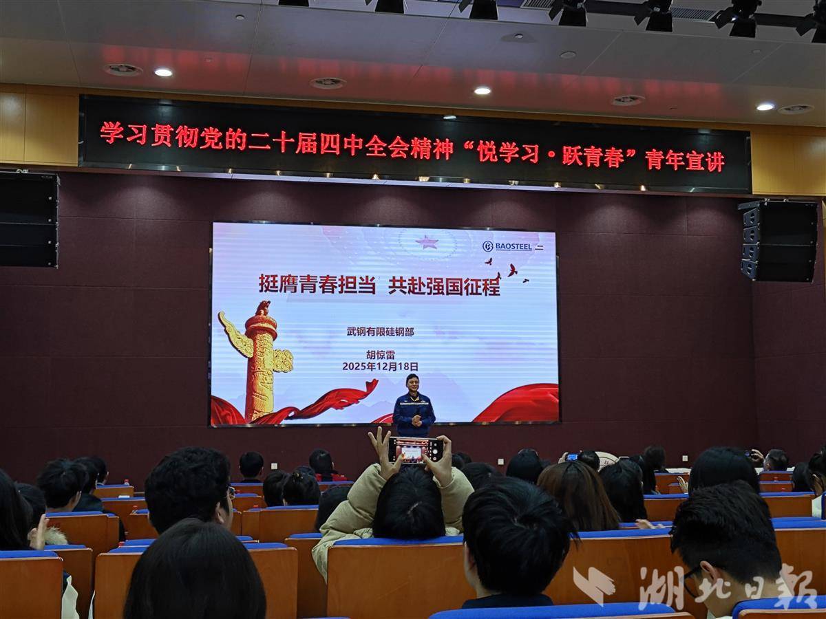 12月18日,6位来自不同领域的湖北省“悦学习·跃青春”青年宣讲团、“00后”青年宣讲团成员代表走进中南财经政法大学,带着他们对党的二十届四中全会精神的深刻体会与切身感悟,为学子们带来一场精彩的思想盛宴。